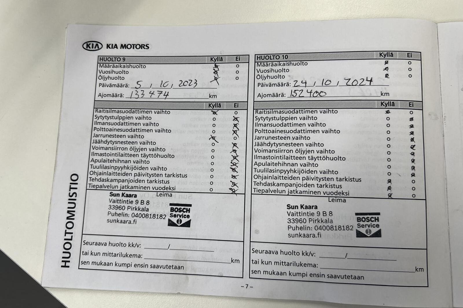 - Huoltokirja