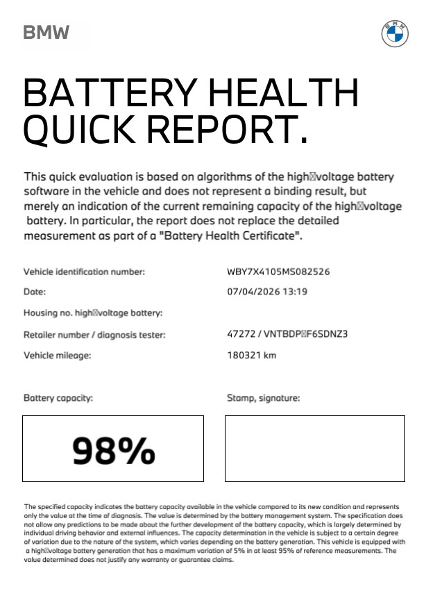 - BMW Battery Health Quick Report - tulos 98,0%